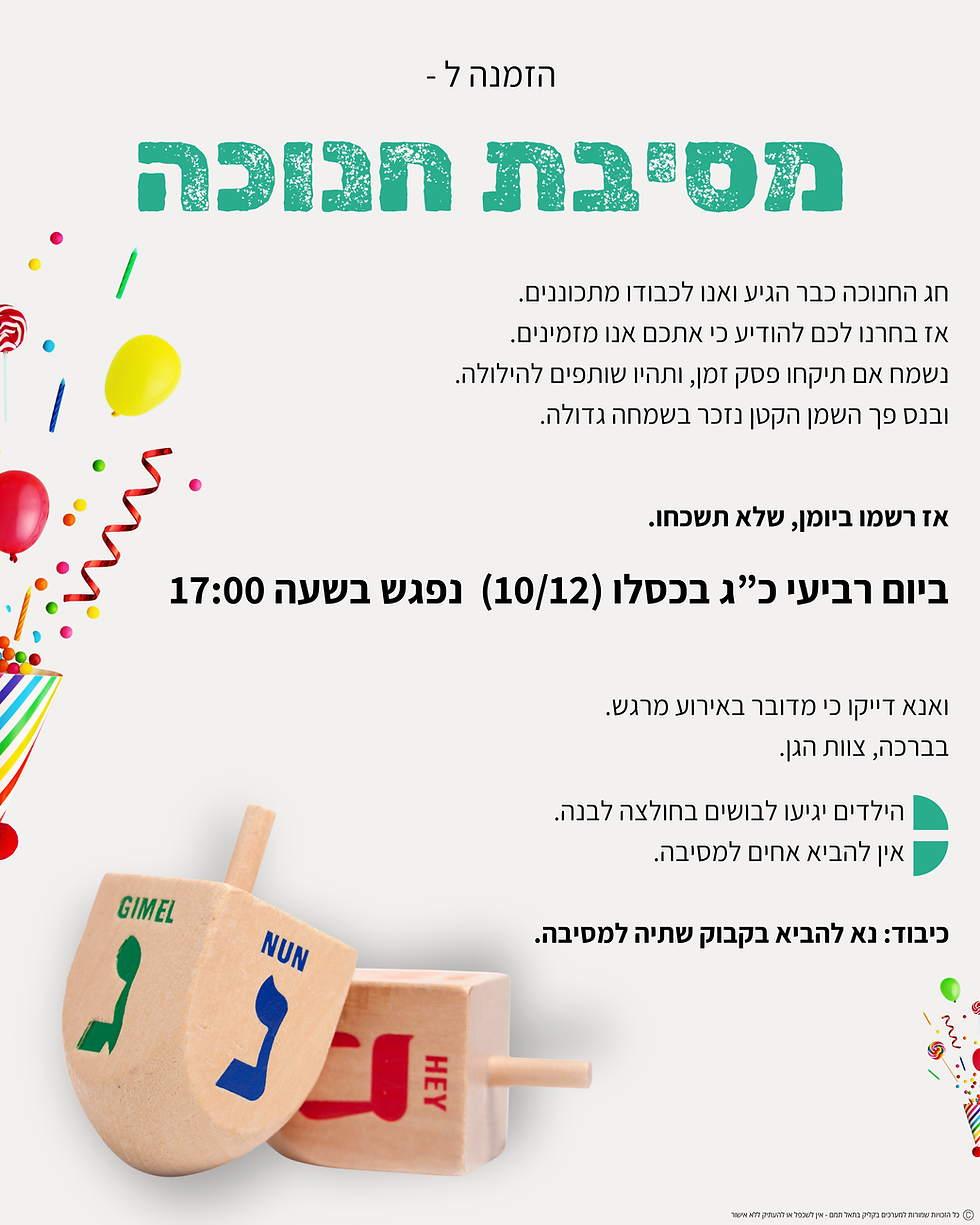 קישור לתבנית - הזמנה למסיבת חנוכה
